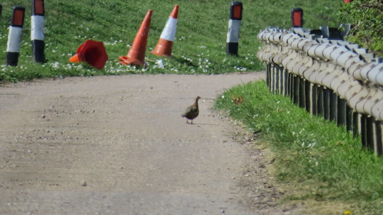 The day began and ended with another introduced species - a bemused Red-Legged Partridge was found scampering anxiously along the vehicle track alongside East Warwick. A mega bird for the patch - it's a funny game this.